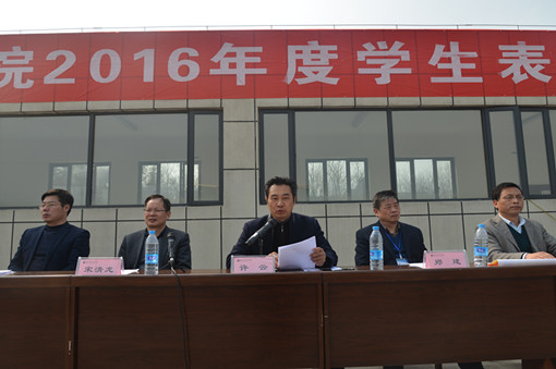 党委书记许云在讲话中充分肯定了2016年学校学生工作取得的优异成绩,代表校党委、行政对学生工作队伍全体同志表示诚挚的问候和感谢。他指出,本次总结表彰大会,是学校贯彻落实全国高校思想政治工作会议精神的重要工作安排,要学习好全国高校思想政治工作会议精神,贯彻好中央文件要求,把我校学生思想政治工作推向新高度。2016年是学生工作硕果累累、繁花似锦的一年,许书记在讲话中列举了我校学生在全国、全省各类学科竞赛中取得的佳绩,由此讲到:大学是人生最美好的季节,累累硕果的取得也是学院推进教风、学风建设,扎实落实各项工作要求的深度体现。他强调,成绩属于过去,奋斗才能赢得未来。要实现学校跨越发展,全校上下要继续自我加压,主动作为,以更加强烈的责任感和时不我待的紧迫感,投入到学校改革发展的辉煌事业中去。