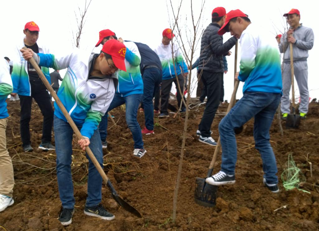 植树现场气氛活跃,老师同学们互相配合,无数只手在这个日子握紧希望之光,一同奋斗,诠释着内心最美好的愿望。