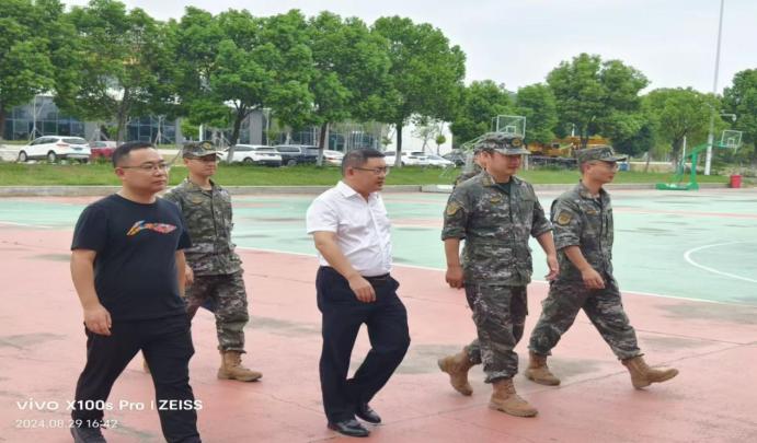 8月29日下午,襄阳武警支队来我校就军训有关事宜进行协调,副校长傅强、学工处处长何峰与武警支队秦参谋长、马大队长一同走访了军训场地、食堂、宿舍等,并就军训内容安排、后勤保障等问题进行商议。