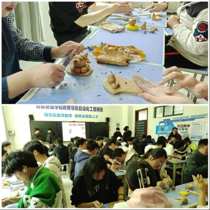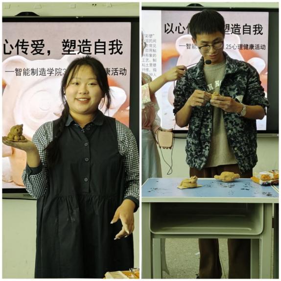 本次活动需要同学们以遇见“泥”为主题亲手制造泥塑,“塑”造自我,“塑”说心声,打造出个人专属的自我小像,拟化物等,通过这次活动,旨在引导学生放松身心,在主动思考和动手实践的过程中增强自我了解、自我发现、自我展示。同时在与同学互动合作中,加强沟通,增进了解,打破交际壁垒,促进和谐人际关系。活动中,同学们发挥各自想象,泥塑造型姿势各异,有活灵活现的动漫景物,有栩栩如生的水果,还有极其精巧的泥龙,同学们大显身手。现场的活动氛围热闹非凡,同学们参与度、体验感拉满,乐在其中。