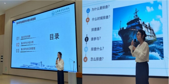 本次培训以新学期心理健康教育工作为主要内容,包括新生心理普查工作安排,心理测评的目的和作用、操作与实施;普查后辅导员如何开展心理谈心谈话;以及重点关注学生的后续跟进相关事项。通过生动的案例分析,参会老师深入了解了心理危机干预的工作流程,有效减轻了面对危机时的工作压力。